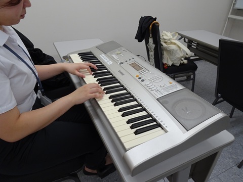 保育士資格を取得している専攻科の学生がピアノ(キーボード)を弾いてお手伝いしてくれました。こちらのお写真は、控室で練習している風景です。