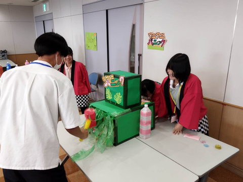 今回は、夏に相応しく「夏祭り」を体験していただきたく、学生がゲームコーナーの説明や高校生のサポートなど、とても活躍してくれました。