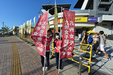 この取り組みは、「ギラヴァンツ北九州」とプレミアムパートナーシップを結ぶ、九州女子短期大学との連携事業のひとつで、「ギラヴァンツ北九州」のホームゲームで、サポーターが子ども連れでもゆっくり観戦できるための空間を提供するものです。