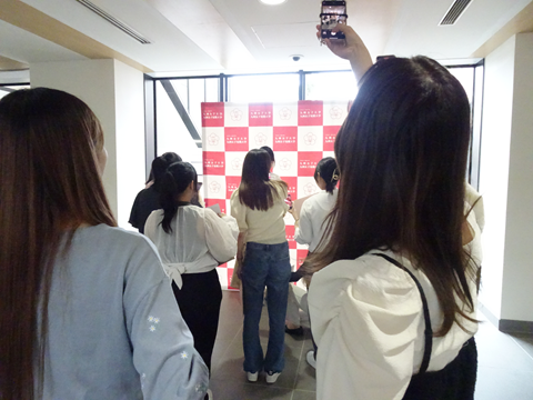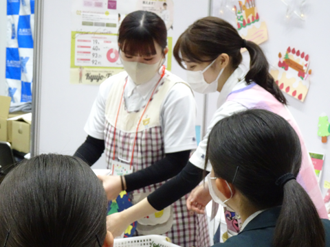 短大生活の魅力などについて紹介してくれました。終始笑顔で短大についてアピールしてくれました。この後もスマイルキャストしてカフェ「KYUJOY! 」で高校生の質問に回答してくれました。