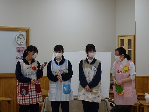 学生による手遊びやパネルシアター「素敵なぼうしやさん」が披露されました。