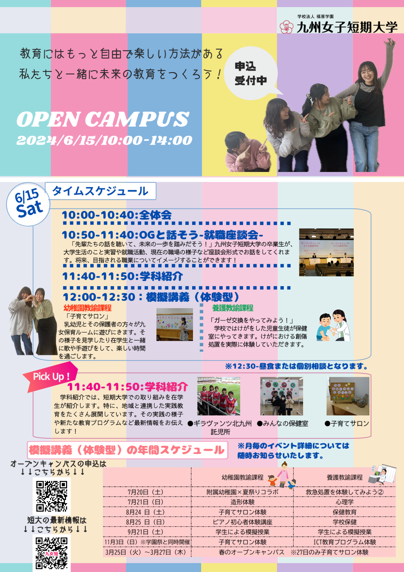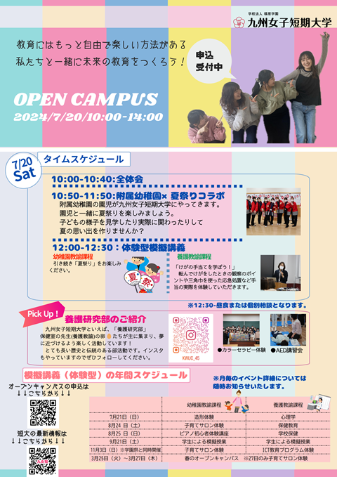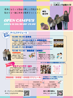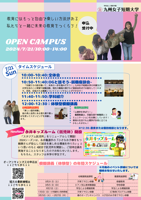 また、本学では8月24日のオープンキャンパスにて「第2回子育てサロン」を開催いたします。ぜひ、乳幼児とその保護者を対象としておりますので、ぜひご参加ください。大学構内の保育ルームを開放して行っております。