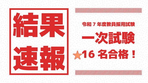 令和7年度採用の教員採用試験の一次試験結果がでました!今年は、なんとのべ16名(11地方自治体)への合格者が出ています。