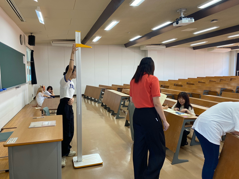 「学校保健実習」という科目は、養護教諭養成課程の学生が履修します。次年度の養護実習を見据えた養護教諭の職務を学ぶ科目です。今回、実施したのは健康診断でした。学生が実施要領を作成し、自分たちで健康診断会場を設営し運営します。必ず、児童役と養護教諭を体験できるようにローテーションを組んで行います。