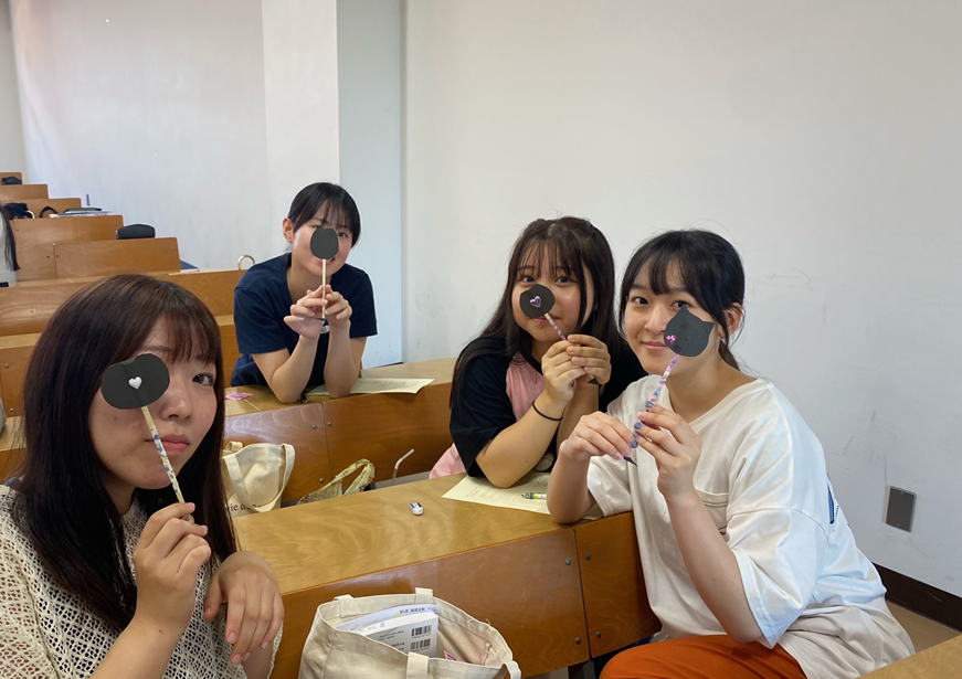 この器具は「遮眼子(器)」と言って、視力検査の際に使用するものです。終わった後に消毒をするのが基本ですが、今回は「マイ遮眼子(器)」を作成し、それで眼を覆うようにしました。コロナ禍以来、ディスポタイプの遮眼子(器)がでてきましたが、今回は自分たちで作成してみました!