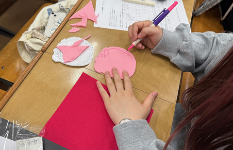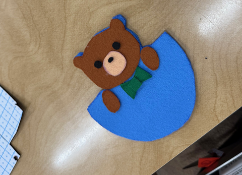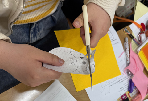 現在、今後の実習で使用するフェルトを使用した名札づくりに取組んでいます。「裁縫」の知識と技術は、保育者、教育者を目指す学生には必要な技術です。保育者として衣装を作成したり、養護教諭としたりボタンを縫うなどの場面で対応する機会があります。