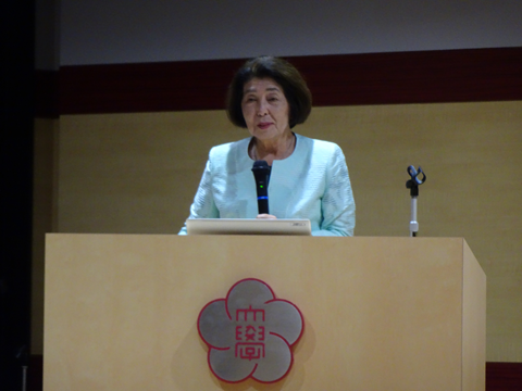 次に、「附属幼稚園3園」の園長先生、九女短大の卒業による説明会がありました。お写真は、鞍手幼稚園園長 青山先生です。特に、今年度の研修で行かれた「フィンランド」の幼児教育について説明がなされており、学生は興味深々で話を聞いていました。