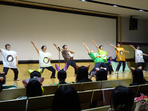 最後は、演目「くれよんのくろくん」です。新品のまま使われることのなかったクレヨンたち、クレヨンたちは飛び出して絵を完成させてくろくんだけは仲間にいれてもらえません。寂しそうにしていてくろくんのもとへ、シャーペンのおにいさんがやってきました。人は誰も良いところがあり活躍できるんだと意味の込められたお話です。背景を工夫したり、リボンを持って新体操なみのダンスを披露したり、各グループ工夫が見られました。