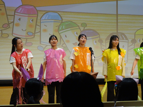 7月25日は授業「保育内容指導法(表現)」において、オペレッタ発表会実施いたしました。「保育内容指導法(表現)」は、保育士資格を取得するために必要な科目です。オペレッタとは、イタリア語で「小さいオペラ」を意味し、音楽に乗せて演じられる歌劇の一種で、保育園や幼稚園などで子ども達が取り組める簡単な形式となっています。