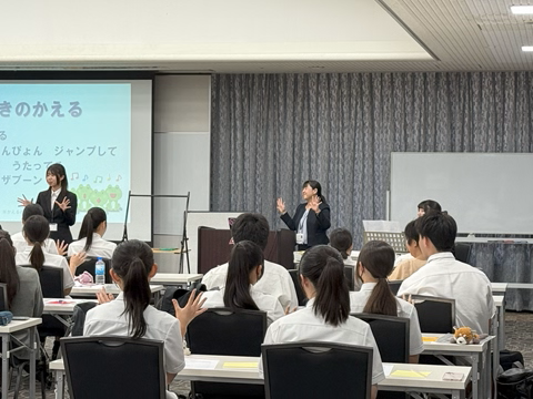 この取り組みは、未来の保育の担い手となる高校生等を対象に保育士の魅力を伝えるべく、今年度からスタートしました。本学は、このプログラムにある60分間の体験授業を実施させていただきました。多くの高校生の参加があり、大変盛り上がりました。