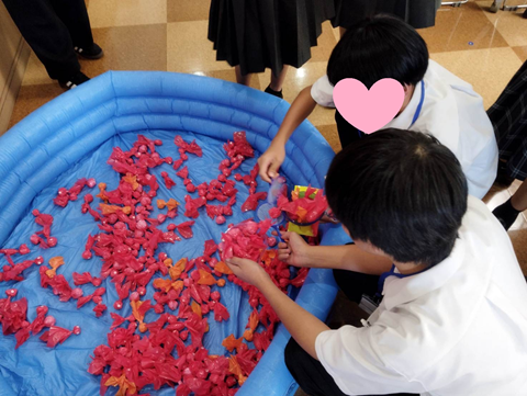 今回は、夏に相応しく「夏祭り」を体験していただきたく、学生がゲームコーナーの説明や高校生のサポートなど、とても活躍してくれました。